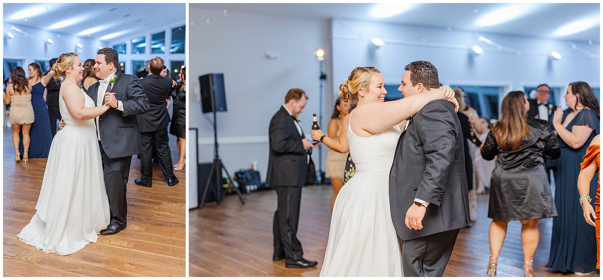 They kept their wedding decor clean and simple, to mimic their classic love and the airy waterfront venue. Navy blue accents were complimented with gold touches and white & cream linens and decor. Little pops of red made a fun appearance throughout the wedding as well!